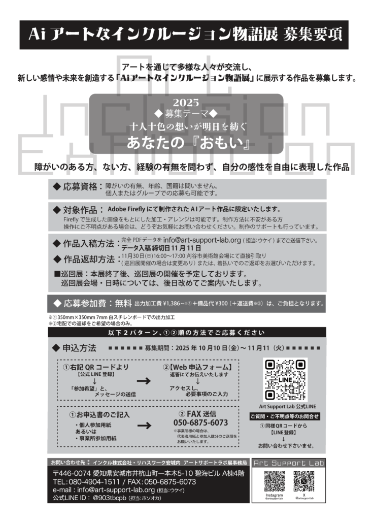 TEL:080-4904-1511/FAX:050-6875-6073e-mail:info@art-support-rab.org(担当:ウケイ)